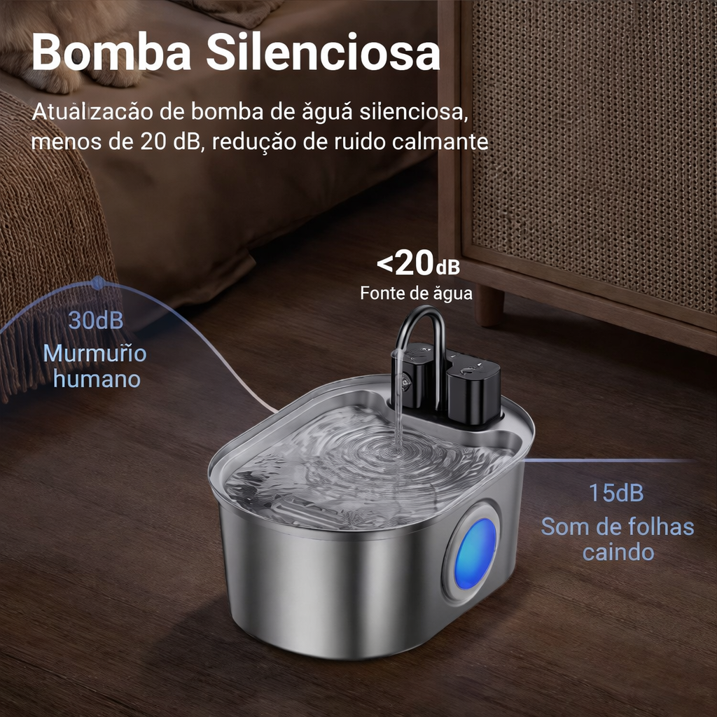 💧 Fonte Automática Inteligente 3,2L em Aço Inox com Sensor e Sem Fio para Pets 🐾
